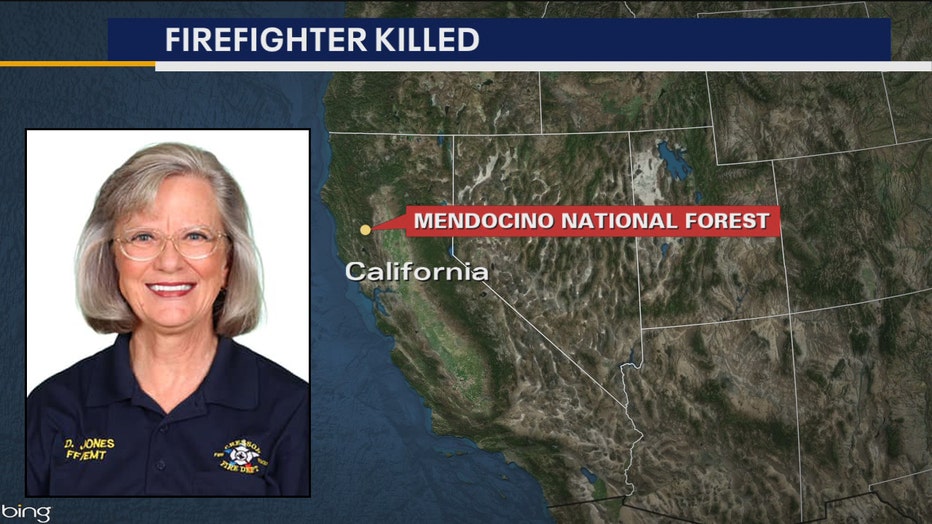 Jones’ latest assignment sent her to the Mendocino National Forest north of San Francisco. She shared photos of the area on her Facebook page on Sunday.