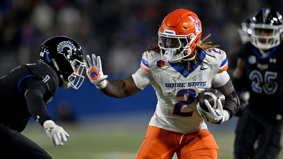 SAN JOSE, CALIFORNIA - NOVEMBER 23: Ashton Jeanty #2 of the Boise State Broncos runs against the San Jose State Spartans on November 23, 2024 in San Jose, California. (Photo by Brandon Vallance/ISI Photos/Getty Images)