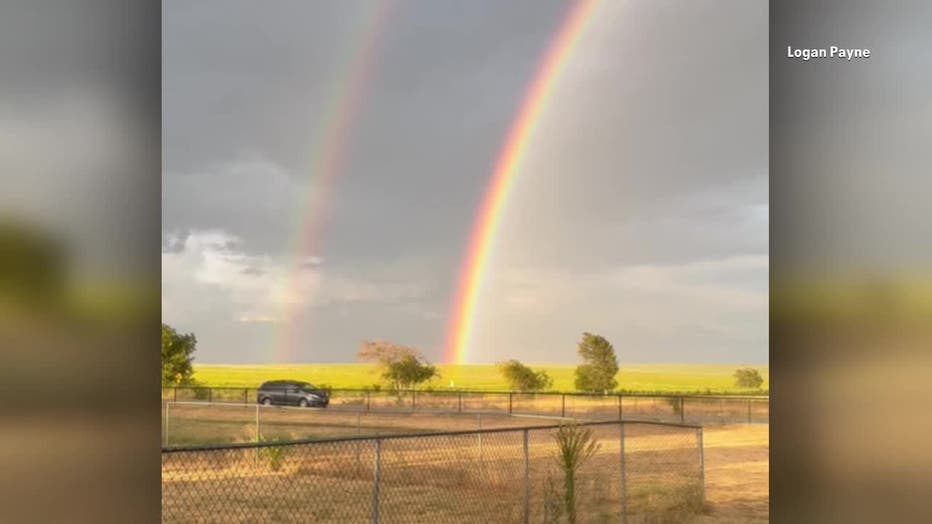 The scattered storms also brought a double rainbow to Godley in Johnson County.