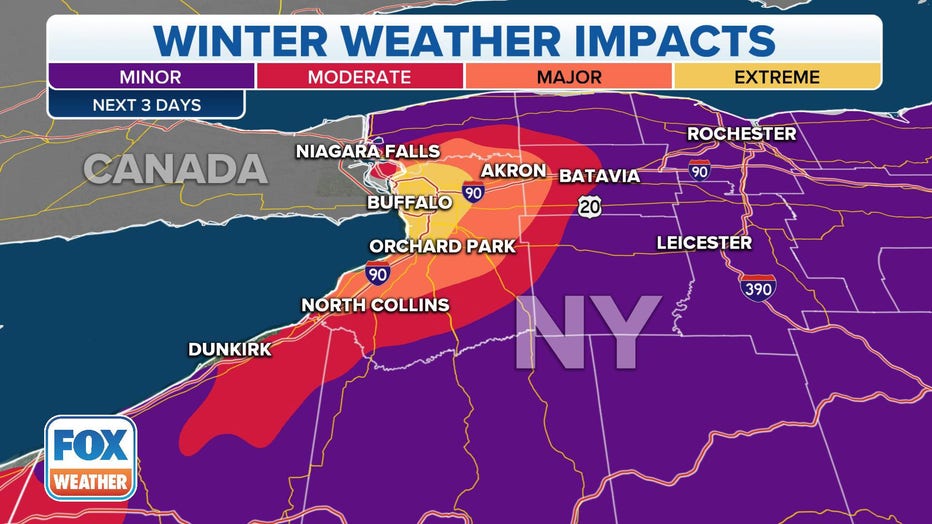 "Snowfall totals are really going to be exceptional here," Niziol said. "In fact, off of Lake Erie, as much as 4 feet over the most heavily populated area of western New York state. And Lake Ontario not far behind – up toward Watertown, 2 to 3 feet there as well."