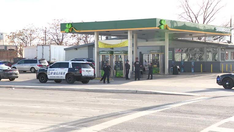 Images from SKY 4 showed a crime scene outside a Shamrock gas station.