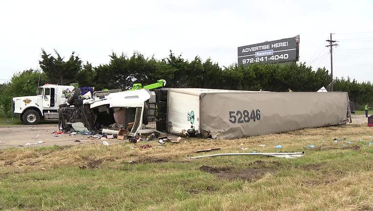 LANCASTER, Texas - A portion of I-20 in Lancaster was closed down for a time Sunday morning while crews cleared the scene of a crash that left an 18-wheeler overturned on the interstate.