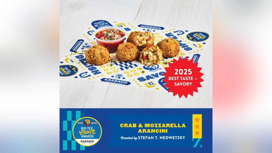 DALLAS - The winners of this year’s Big Tex Choice Awards include crab and mozzarella rice balls, a fruity shaved sorbet dessert, a cookie milkshake, and deviled egg wagyu bacon cheeseburger sliders.