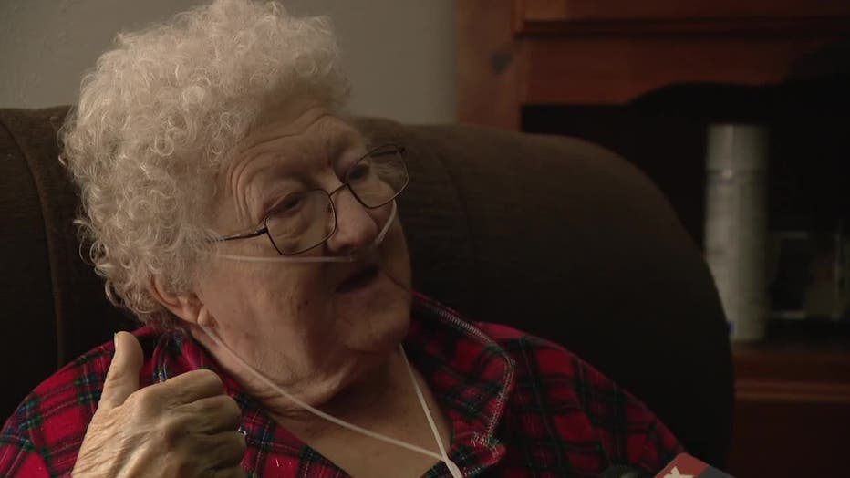 "I couldn’t get up, and he kept knocking stuff on me," she said. "My two kitchen chairs… he hit me with them over the head. Then he took my table and threw it on me."