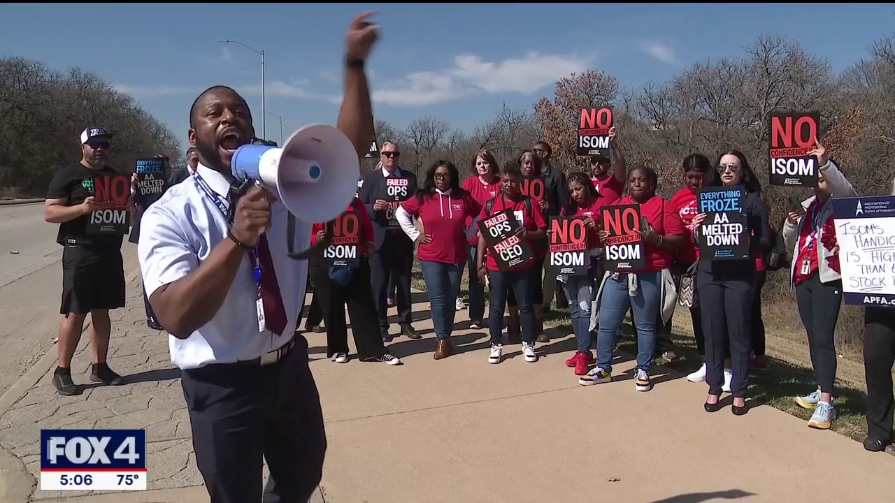 FORT WORTH, Texas - American Airlines flight attendants protested outside their company's headquarters in Fort Worth Thursday morning after their union issued a vote of no-confidence against their CEO.
