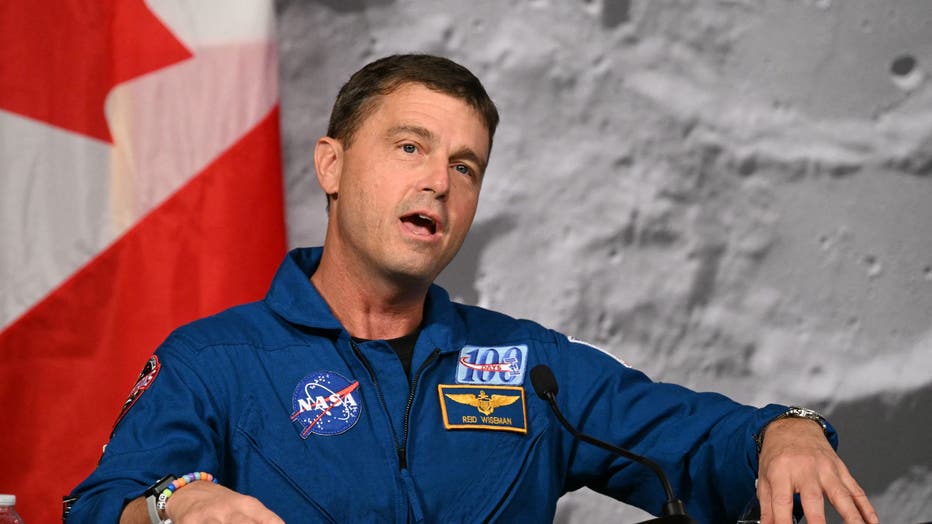 NASA's Artemis II mission commander Reid Wiseman speaks during a press conference at Johnson Space Center in Houston, Texas, on April 16, 2026. The four astronauts of Artemis II did the first slingshot around the Moon in more than 50 years and travel