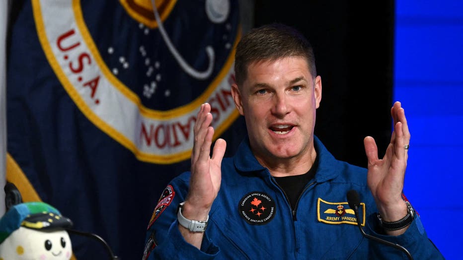 NASA's Artemis II mission astronaut Canadian Space Agency's Jeremy Hansen speaks during a press conference at Johnson Space Center in Houston, Texas, on April 16, 2026. The four astronauts of Artemis II mission did the first slingshot around the Moon