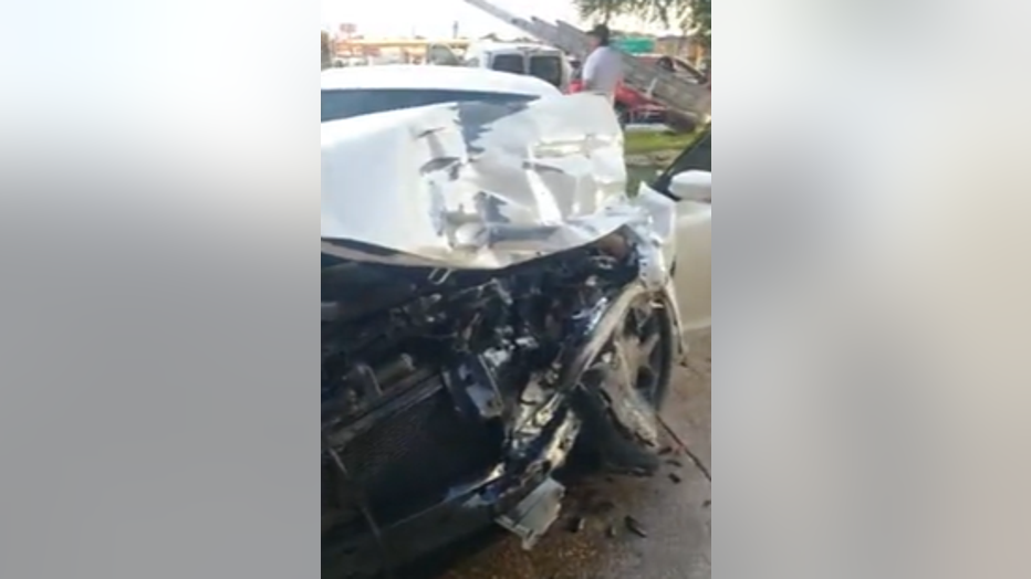 Video shows significant front-end damage to the suspect vehicle. Dallas police are investigating the crash.