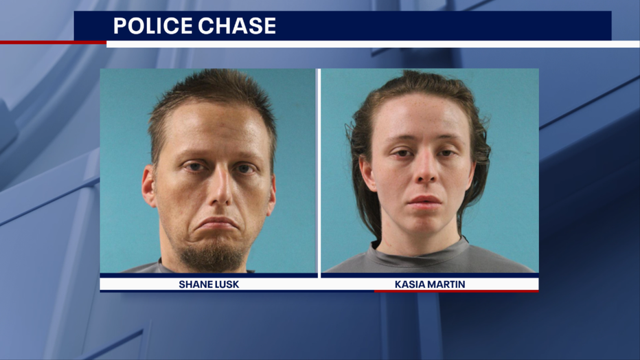 The chase ended in a residential area in the 2100 block of Marin Drive. 35-year-old Shane Lusk and 29-year-old Kasia Martin were arrested at the scene.