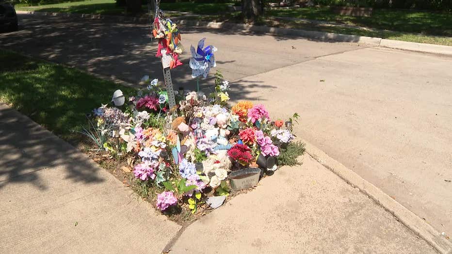 A memorial at the intersection of Matterhorn Drive and San Paula Avenue has stayed up to honor the life of 9-year-old Hutchins Abercrombie.