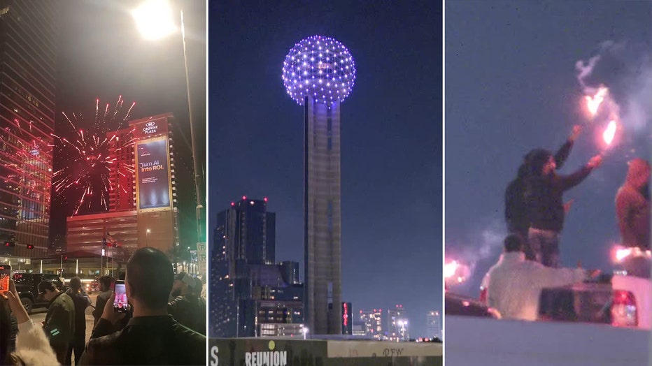 FOX 4 crews captured fireworks being lit off on Griffin Street in Downtown Dallas just after midnight on New Year's Eve.