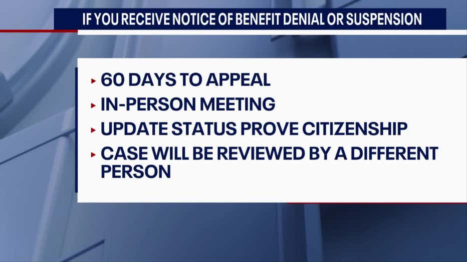 The Social Security Administration allows recipients to appeal benefit denials or suspensions. Individuals have 60 days to request an appeal and must update their status to prove citizenship. The case is then reviewed by someone other than the person who made the initial decision.