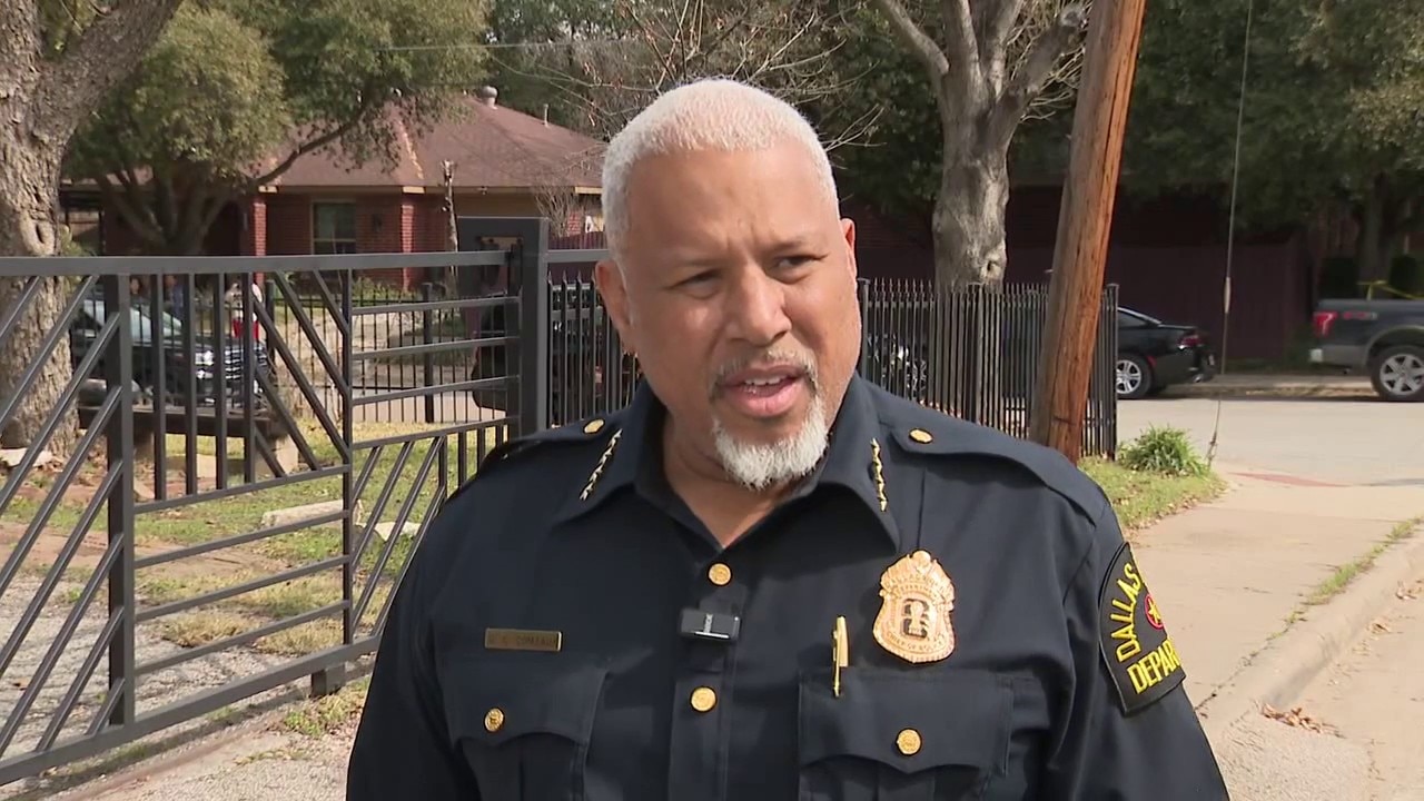 Dallas Police Chief Daniel Comeaux gives an update on a fatal officer-involved shooting that happened on Friday morning in West Dallas. The suspect allegedly pointed his gun "directly at the officer's head," the chief said.