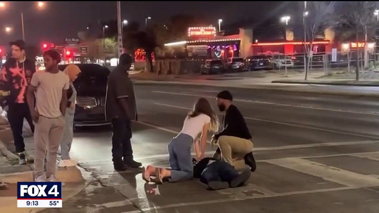 Emma Dilley tells FOX 4's David Sentendrey she and her friends were driving through Oak Lawn in Dallas Tuesday night when they saw a man lying on the street with a crowd of people around him. The man was lying near the intersection of Lemmon Avenue and Douglas Avenue.