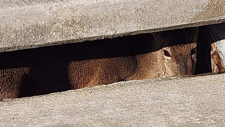 LITTLE ELM, Texas - An animal rescue was caught on camera in Little Elm after a deer found its way into a storm drain.