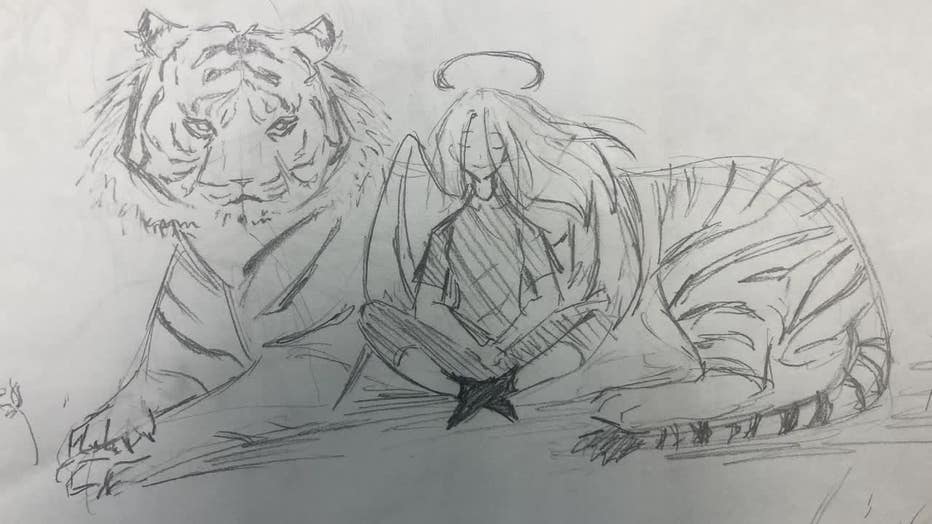 Ferguson made it a project for all his art classes. Tamia’s drawing, a tiger with Marissa's image imposed over it, was selected by Amy and her husband.
