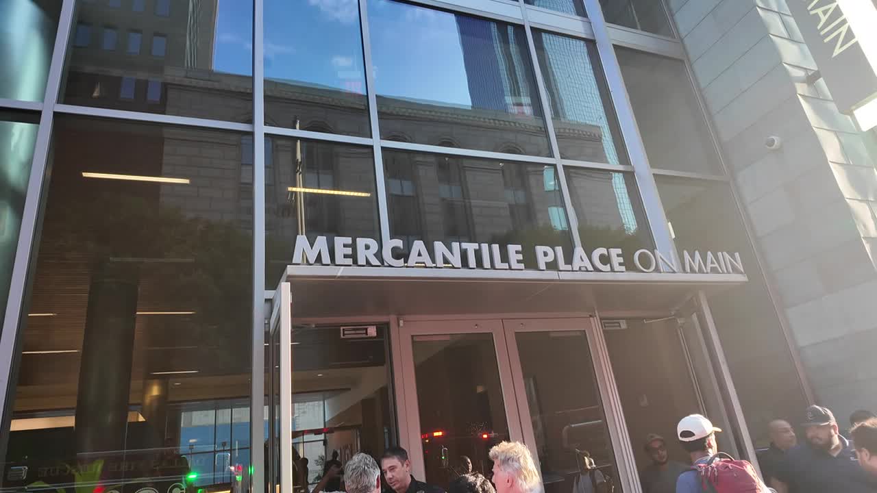 DALLAS - Dallas Fire Rescue were dispatched to a call at 3:46 p.m. after a ruptured water line made its way inside an electrical room at the Mercantile Building in Downtown Dallas.