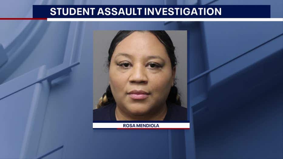 But when detectives reviewed the security video, they determined Mendiola was the aggressor. She allegedly grabbed the student by the throat, pushed him to the floor, and held him down.