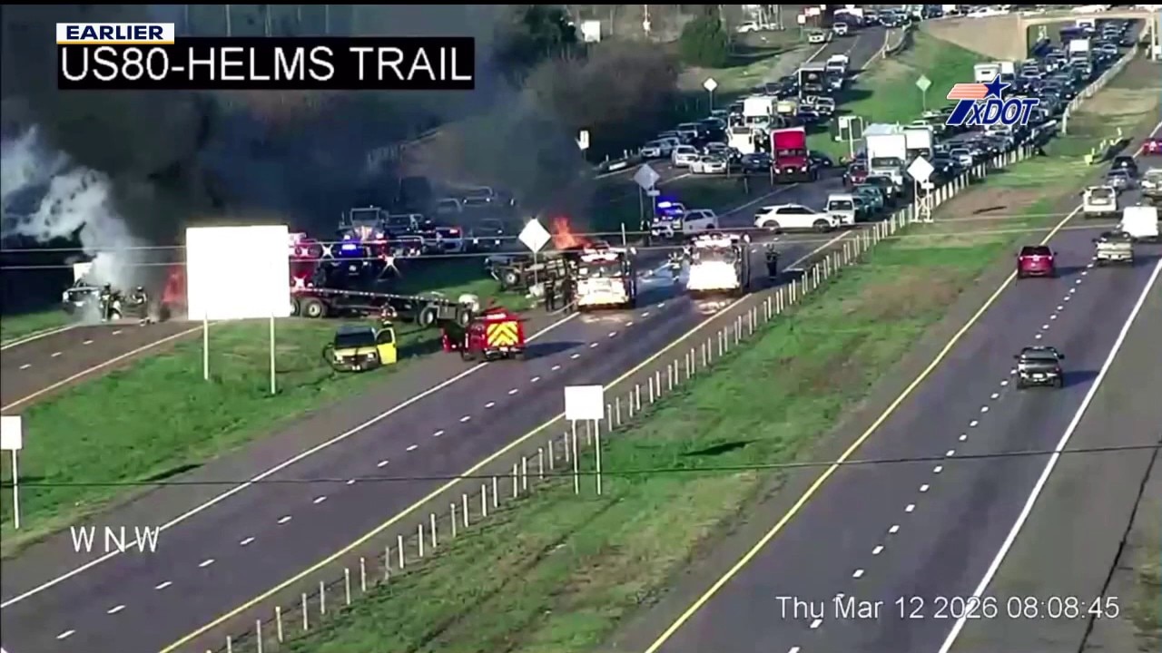 Several vehicles caught on fire on Thursday morning after colliding in the eastbound lanes of Highway 80 in Kaufman County, east of Forney.