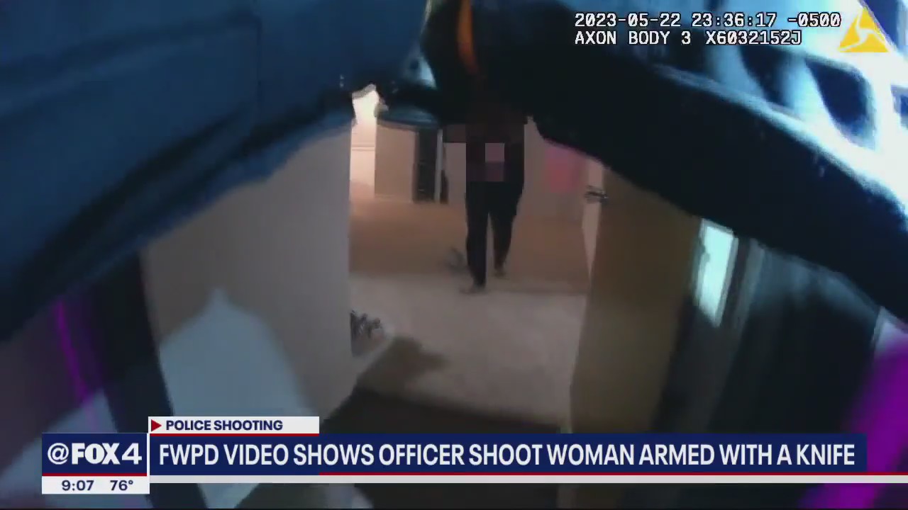 Fort Worth police released body camera video of an officer shooting a woman with a knife on Monday night.