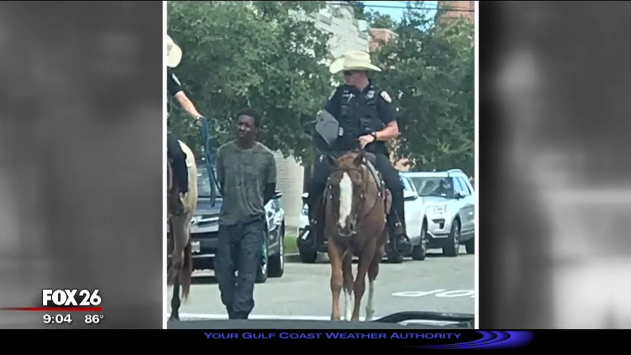 GALVESTON, Texas - Hundreds of people marched through the streets of Galveston on Sunday, demanding justice for Donald Neely. Last month, Neely was arrested by two Galveston Police officers on horseback and escorted through several blocks tied to a rope. His controversial arrest sparked outrage amongst civil rights activists across the country.