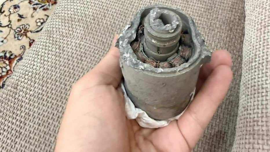 Jam still has family in Iran. Her brother recently sent her a photo, seen above, of debris from an explosion believed to have been caused by a drone striking a vehicle near his home. Jam's brother was unharmed.
