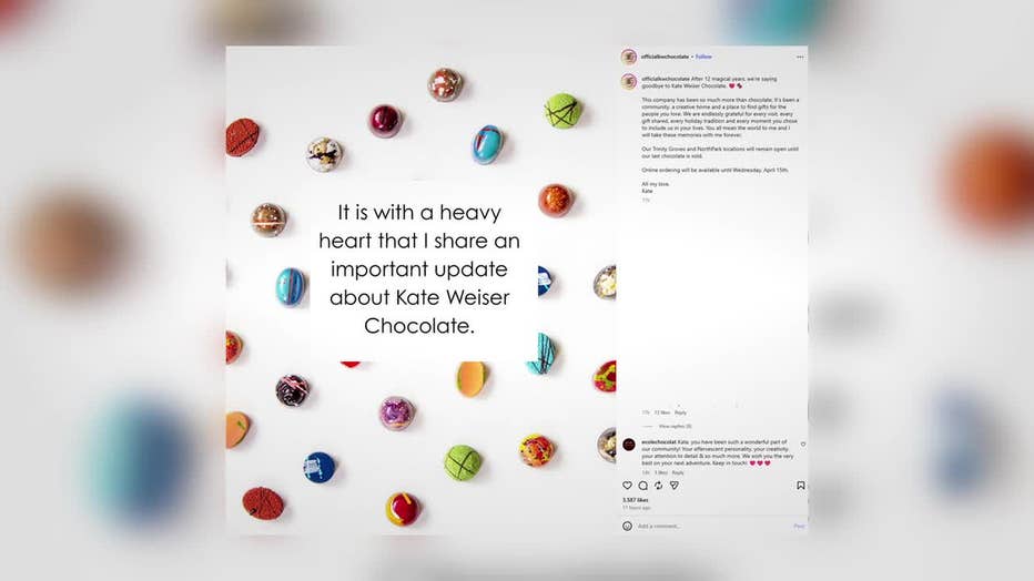 The Source: The information in this story comes from a social media post by Kate Weiser Chocolate.
