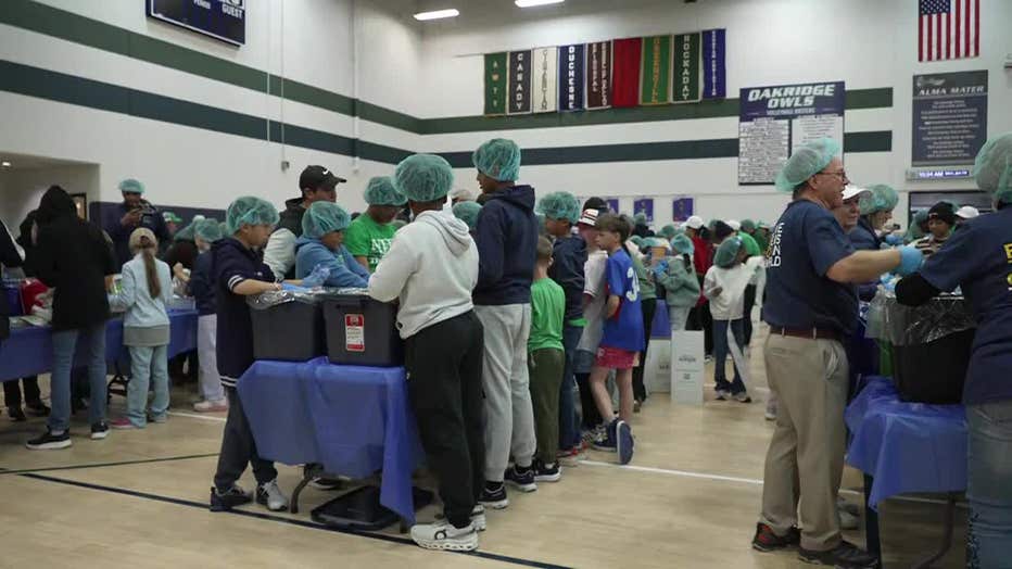 Through a partnership with "Meals of Hope," volunteers packed thousands of meals for working families, children, seniors, and veterans facing food insecurity. Each food package provides six to eight meals.