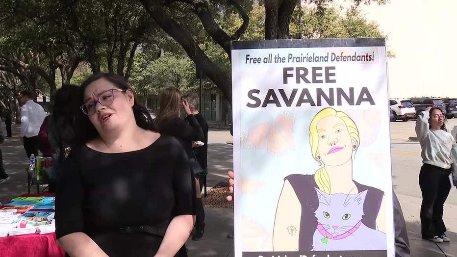 Savanna Batten, one of the defendants, has drawn public support from family members and demonstrators gathered across the street from the courthouse.