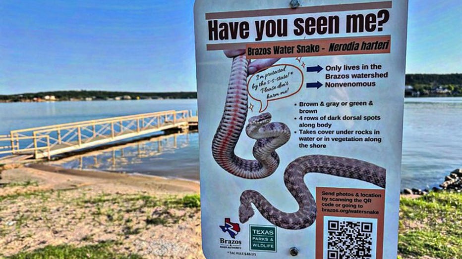The river is the only home of the Brazos water snake, native to the upper drainage of the Brazos River. The juvenile snakes shelter beneath flat rocks along unshaded banks and hunt in shallow water, while the adults occupy faster-moving stretches and forage in open areas such as ponds and lakes.