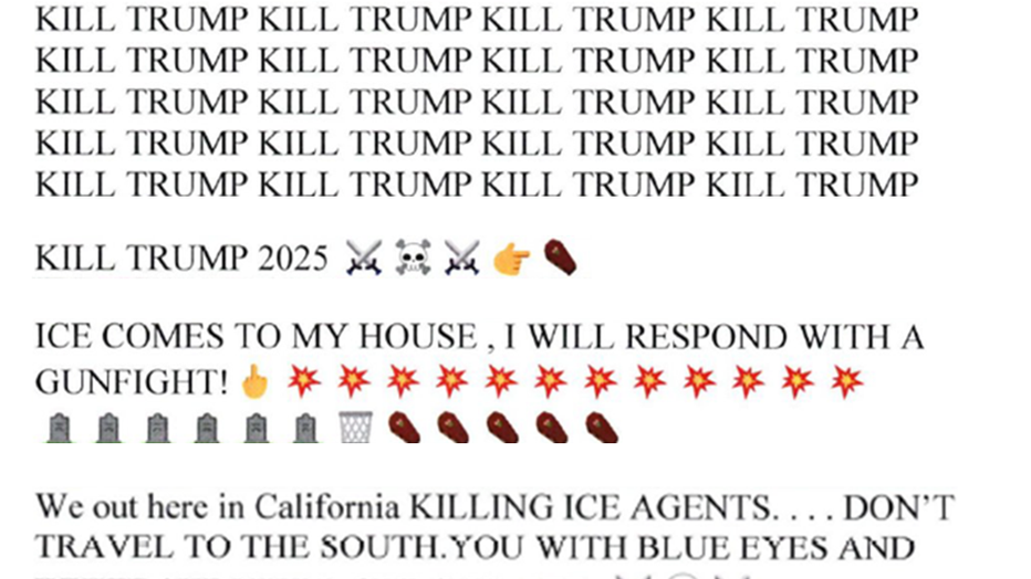 Mena is accused of posting online threats towards President Donald Trump and unnamed ICE agents online on several occasions in May 2025.