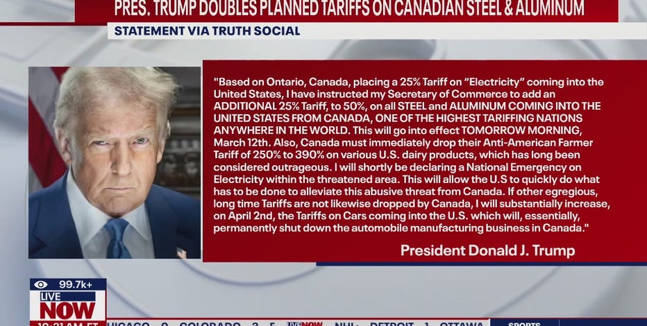 DALLAS - President Donald Trump is doubling down on tariffs on Canadian aluminum and steel, announcing an additional 25% tariff on those metals imported from our neighbor to the north.