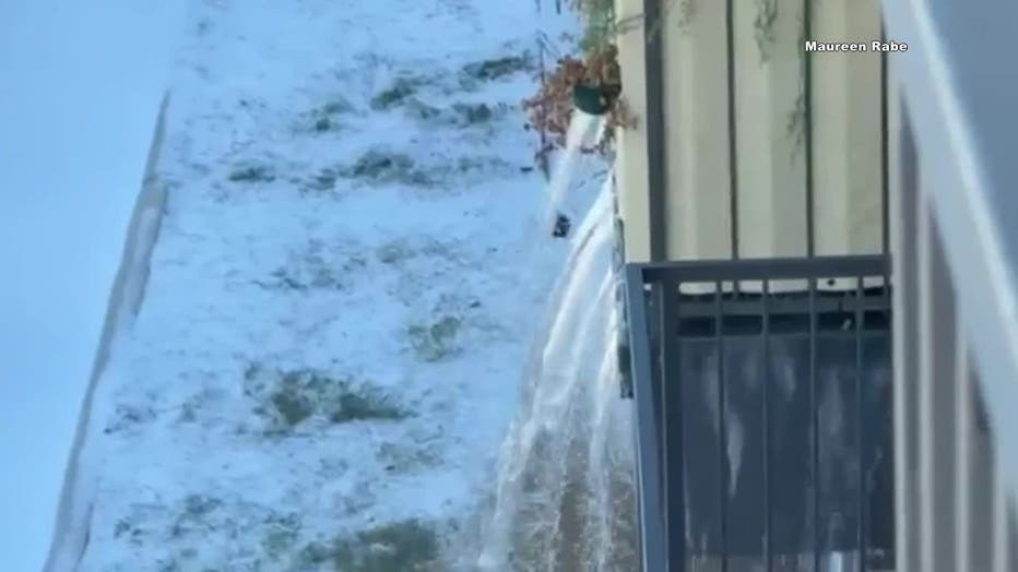 This video shows water from a pipe burst flowing off a balcony at Windsor West Lemmon Apartments in Oak Lawn.
