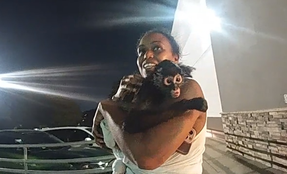 By the time they found the woman, she had already reunited with her monkey, which had calmed down after the antics captured in Monday's viral video.