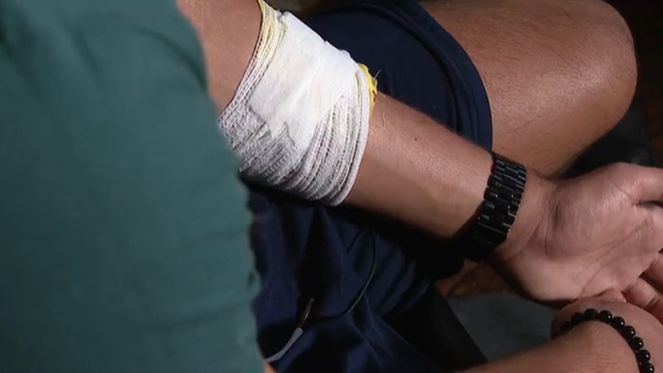 "And then he came like a little in front of me, then randomly turned around, came up and stabbed me and just ran away," Dhar said.
