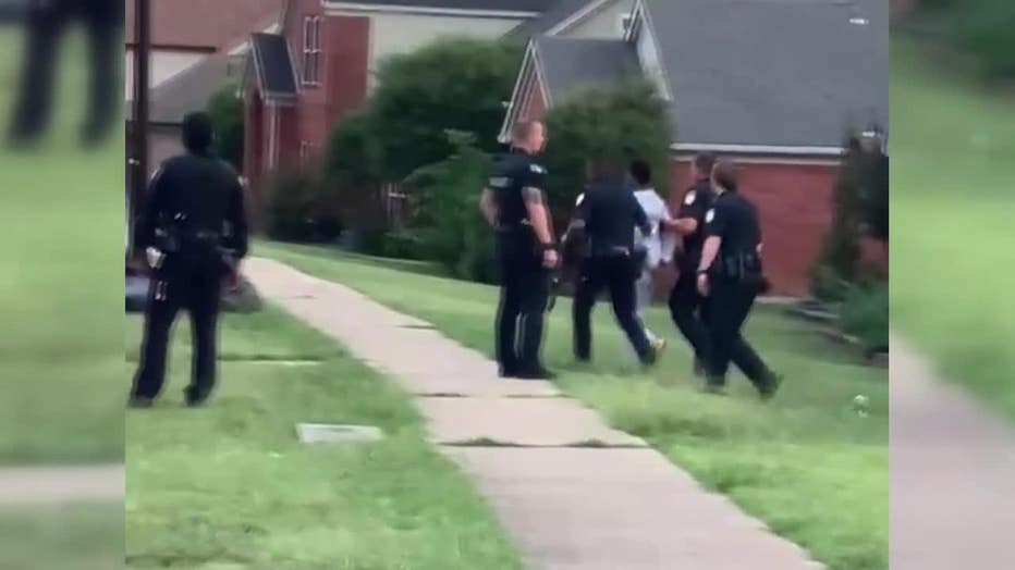 Cell-phone video shows Garland police arresting the suspect at a home a few blocks away on the day of the shooting.