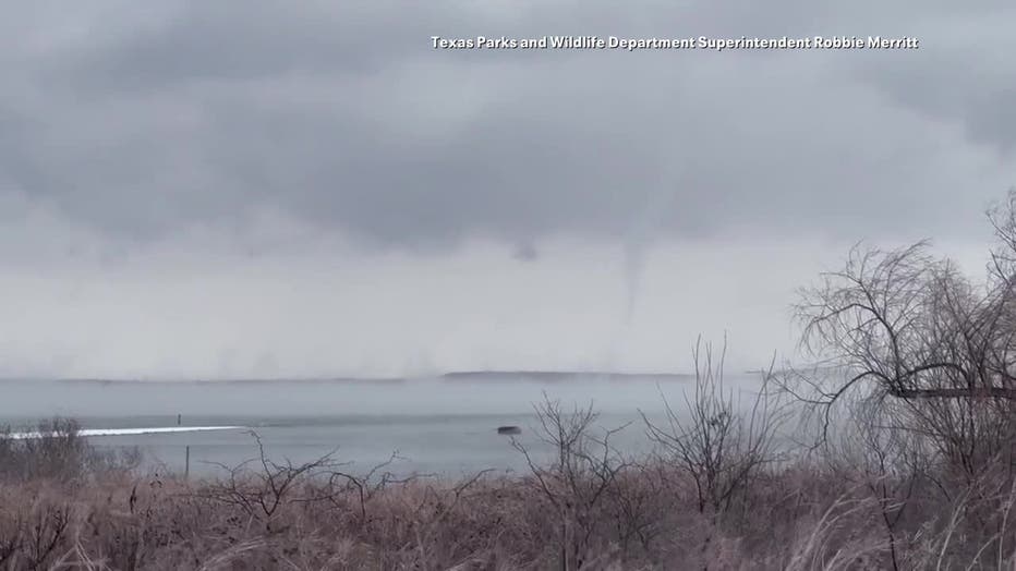 LEWISVILLE, Texas - Here's something you don't see every day: a ‘steamnado’ made an appearance over Lake Lewisville on Sunday during the winter storm.