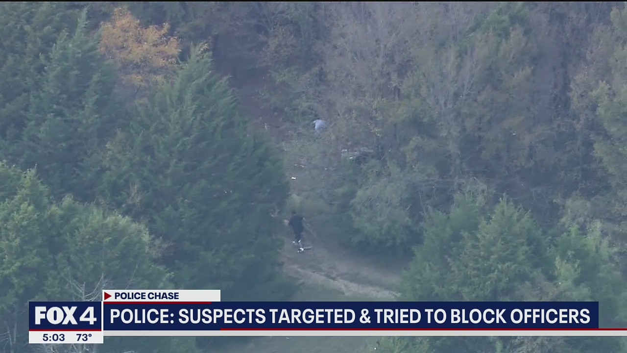 Eventually, the suspects went to a wooded area near Seagoville Road, where it got stuck in mud. Two men and a woman then took off on foot.