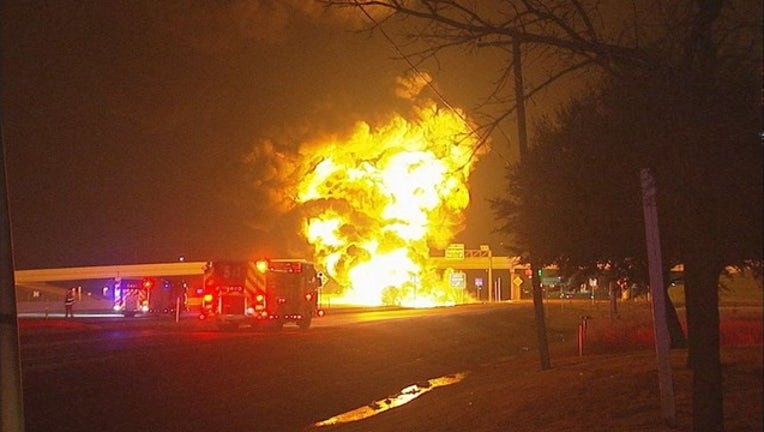 As of 7 a.m., the tanker was still on fire and traffic continued to back up on I-45.