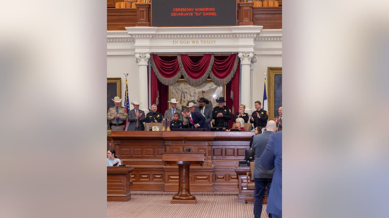 The Tarrant County Sheriff’s Office, Fort Worth Police Department and Texas Department of Public Safety received special permission to swear in DJ on the floor of the Texas House Chamber.