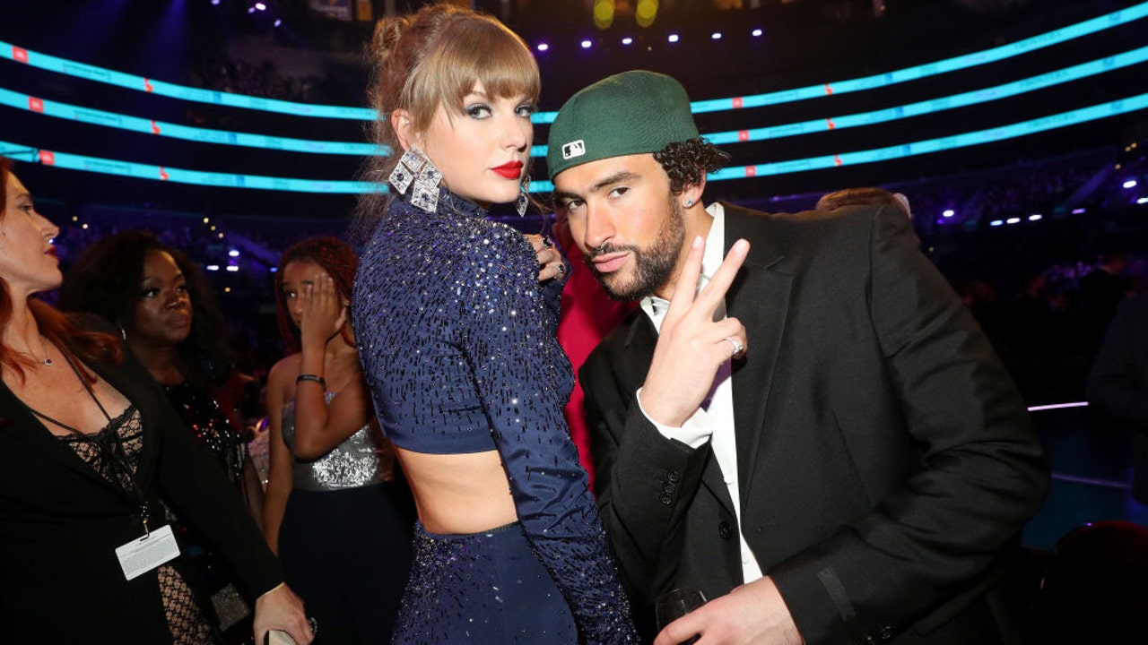 From (L-R) Taylor Swift and Bad Bunny pose during the 65th GRAMMY Awards at Crypto.com Arena on February 05, 2023 in Los Angeles, California. (Photo by Johnny Nunez/Getty Images for The Recording Academy)