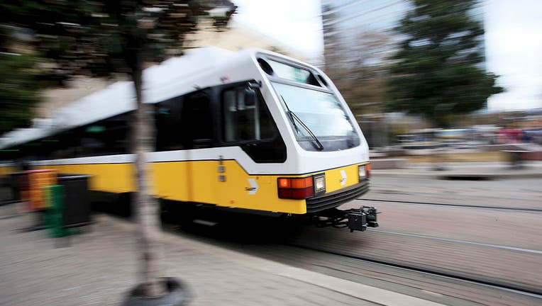 A Dallas Area Rapid Transit (DART) train moves after making a stop in Dallas, Texas, U.S., on Thursday, Dec. 19, 2013. Photographer: Ben Torres/Bloomberg via Getty Images