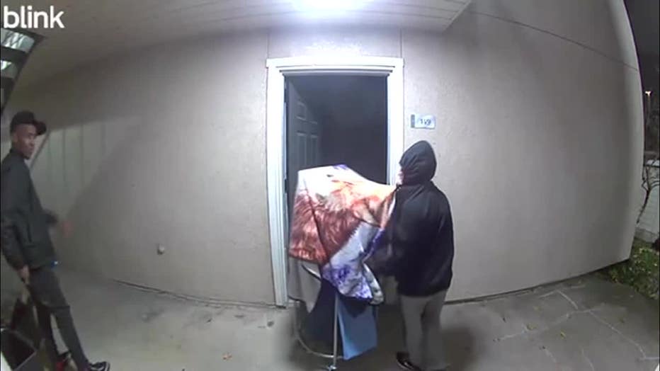 A neighbor’s doorbell camera captured video of the burglary.