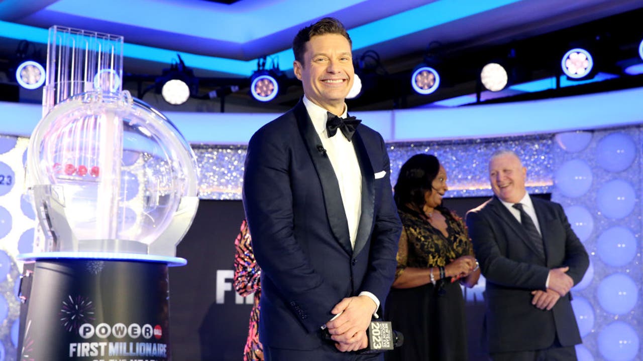 VARIOUS CITIES - JANUARY 1: Ryan Seacrest speaks onstage at Powerball First Millionaire of the Year during Dick Clark's New Year's Rockin' Eve With Ryan Seacrest 2023 on January 1, 2023 in New York City. (Photo by Rob Kim/Getty Images for dick clark