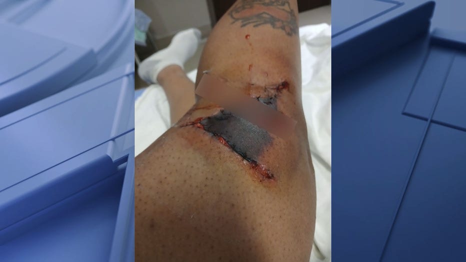 "The dog was already trying to chase somebody else, and it turned around, and it grabbed my leg and it shook me down," Hudson continued. "That's when it bit my face, as you can see. It was almost to my neck, but I threw my hand up."