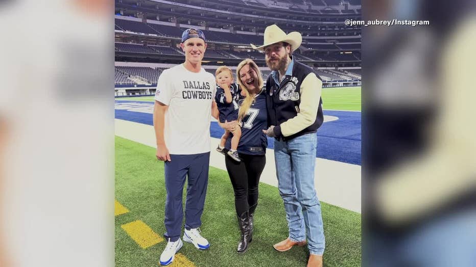 The couple posted a photo with their son, Colton, and Post Malone on the field. The caption confirmed the pregnancy, saying, "We are so excited to share that Baby Aubrey No. 2 is on the way."