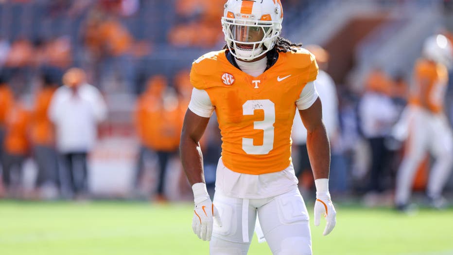 KNOXVILLE, TN - OCTOBER 19: Jermod McCoy #3 of the Tennessee Volunteers before a game between Alabama and Tennessee at Neyland Stadium on October 19, 2024 in Knoxville, Tennessee. (Photo by Roger Wimmer/ISI Photos/Getty Images)