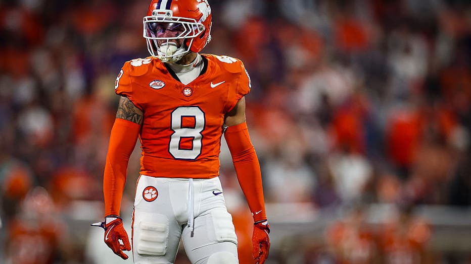 CLEMSON, SOUTH CAROLINA - NOVEMBER 08: Avieon Terrell #8 of the Clemson Tigers looks on during the second half of a football game against the Florida State Seminoles at Memorial Stadium on November 08, 2025 in Clemson, South Carolina. (Photo by David