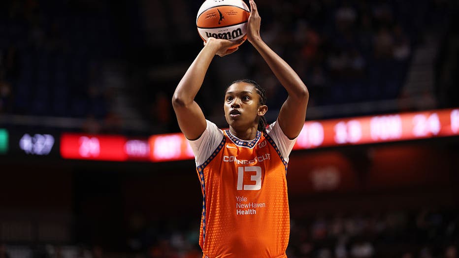 UNCASVILLE, CT - JULY 28: Rayah Marshall #13 of the Connecticut Sun free throw during the game against the Seattle Storm on July 28, 2025 at the Mohegan Sun Arena in Uncasville, Connecticut. NOTE TO USER: User expressly acknowledges and agrees that,