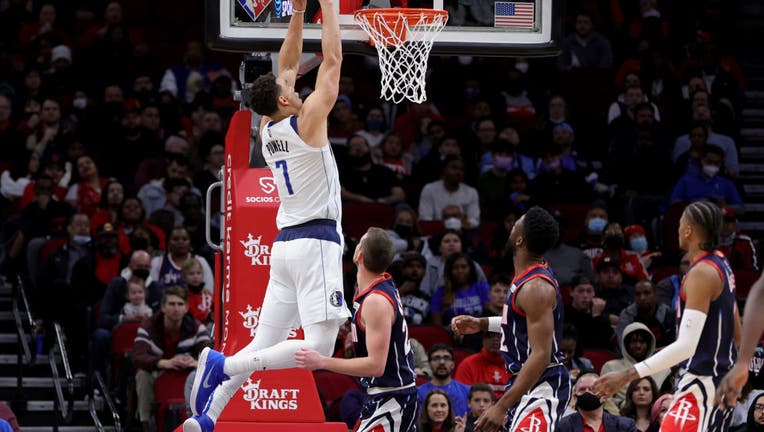 HOUSTON, TEXAS - JANUARY 07: Dwight Powell #7 of the Dallas Mavericks dunks the ball during the first half against the Houston Rockets at Toyota Center on January 07, 2022 in Houston, Texas. NOTE TO USER: User expressly acknowledges and agrees that,